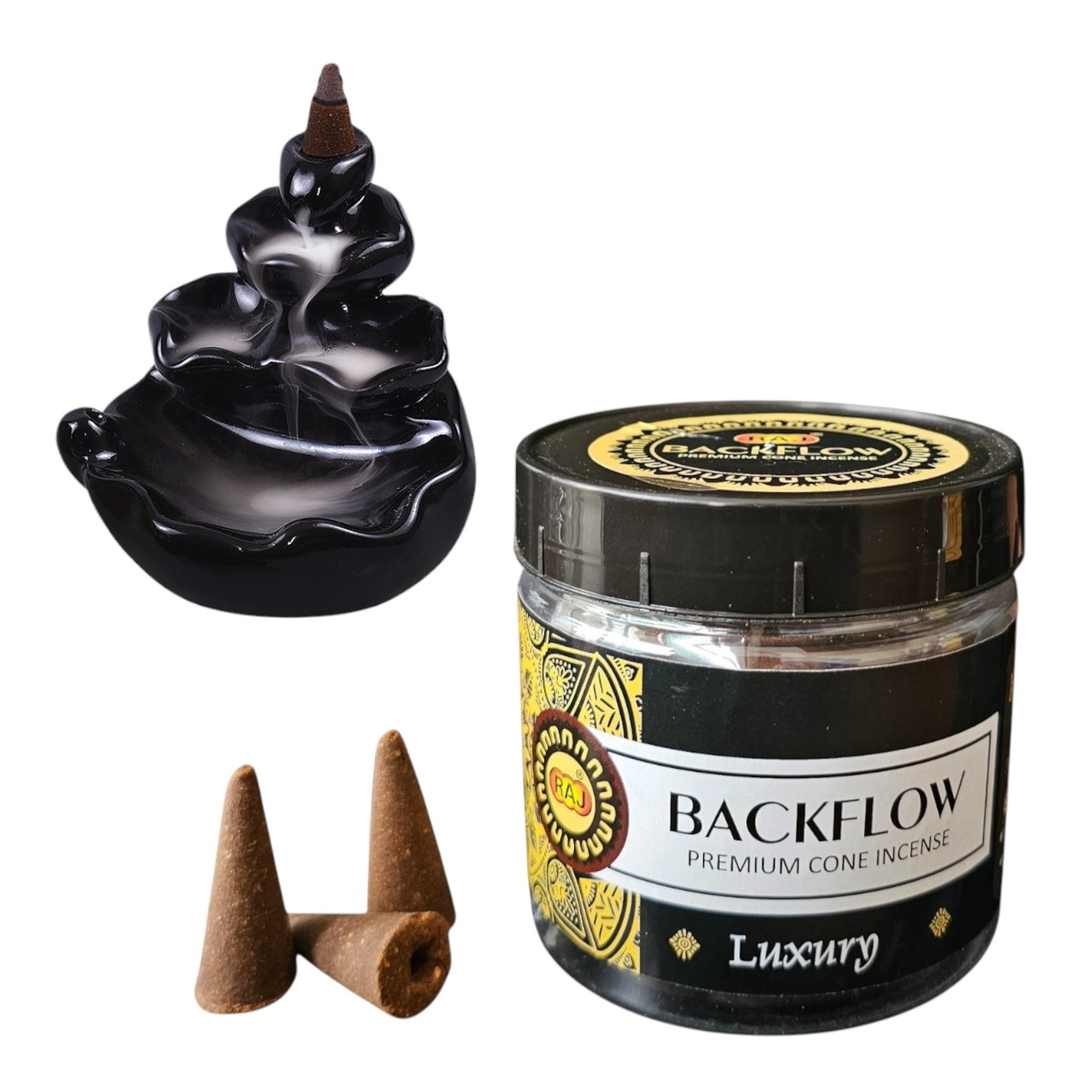 Elevate your senses with our luxury backflow incense cones and premium fragrances. Handcrafted for the discerning, each cone is infused with rich, natural aromas that create a captivating waterfall smoke effect — a visual and aromatic experience like no other.