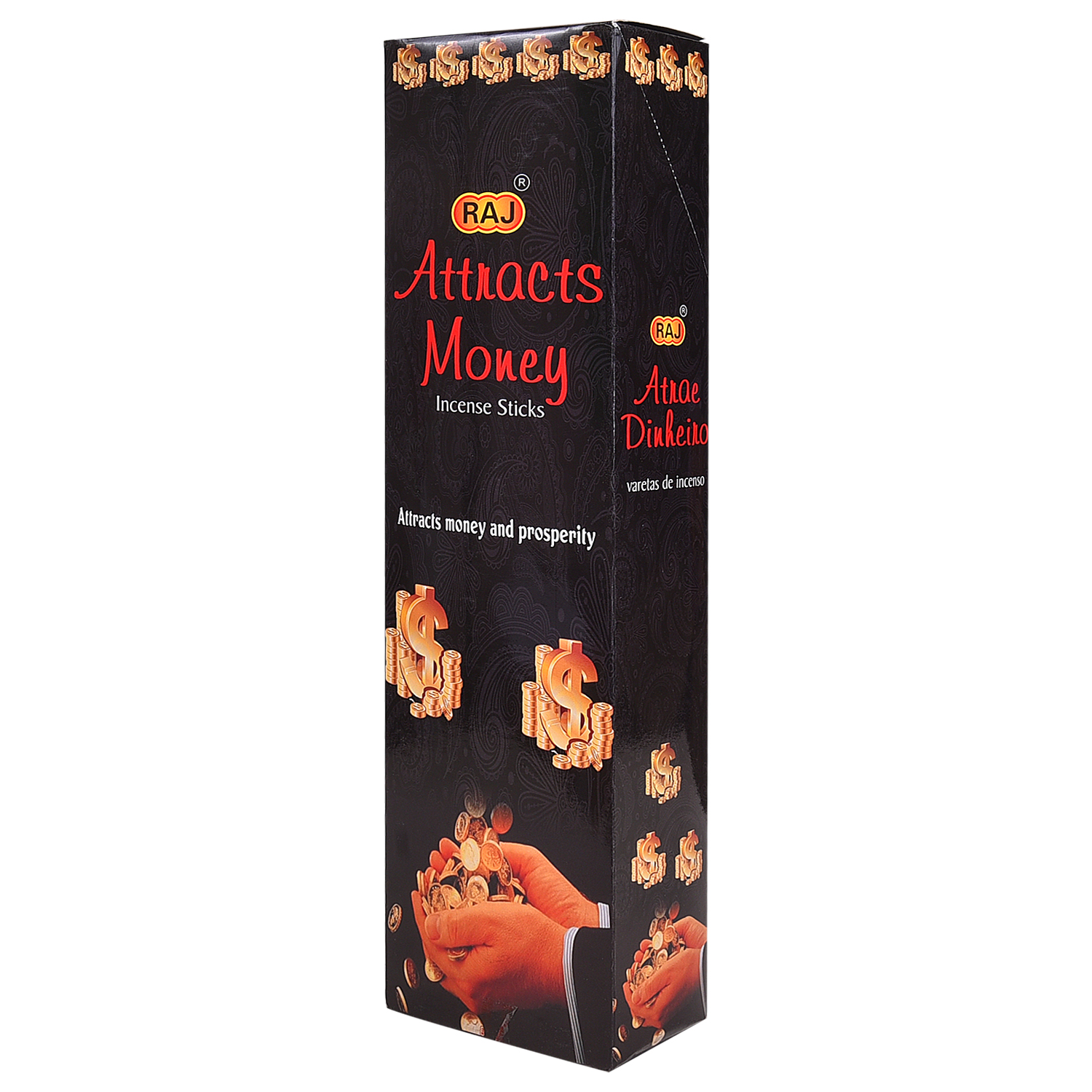 Invite abundance into your space with Attracts Money incense sticks—crafted to create an aura of positivity, focus, and prosperity. Encased in a striking tall hexagon pack, this fragrance blends rich, uplifting notes that energize the mind and inspire confidence in your daily pursuits.Designed for those who believe in the power of intention, each stick releases a smooth, long-lasting aroma that transforms your surroundings into a calm yet powerful atmosphere—ideal for prayer, meditation, or starting your day with purpose.