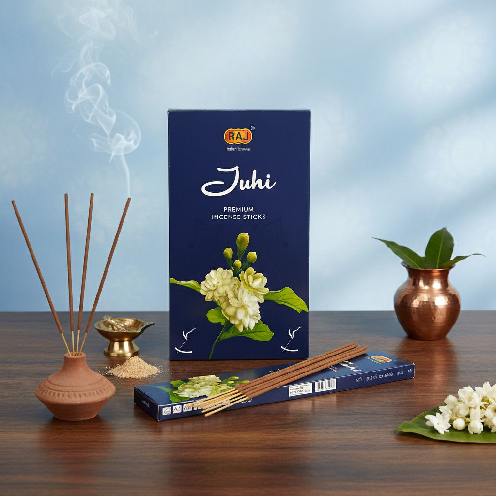 JUHI – Sweet Jasmine – White Bathi captures the delicate charm of blooming jasmine. With its soft, sweet floral notes and a touch of green freshness, this fragrance soothes the senses and uplifts the soul. Whether worn or burned as incense, it creates a serene and graceful atmosphere reminiscent of a jasmine garden at dusk.Inspired by the sacred essence of Indian jasmine, JUHI – Sweet Jasmine – White Bathi is a fragrance of purity and peace. The classic white bathi releases a soft floral aroma that calms the mind and invites harmony—ideal for prayer, meditation, or daily refreshment.