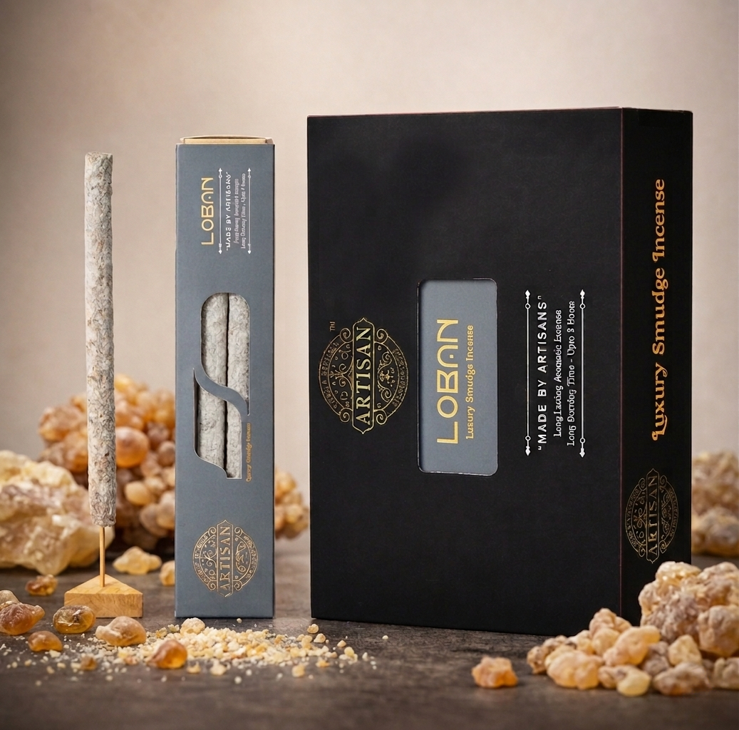 Experience the timeless power of Loban, a sacred resin known for its deep cleansing and spiritual benefits. Crafted by artisans, these luxury smudge sticks release a rich, earthy aroma that instantly purifies the air and creates a calming, divine atmosphere.Each stick is carefully blended to deliver a slow, consistent burn, filling your space with a warm, resinous fragrance that soothes the senses and enhances focus, meditation, and prayer.